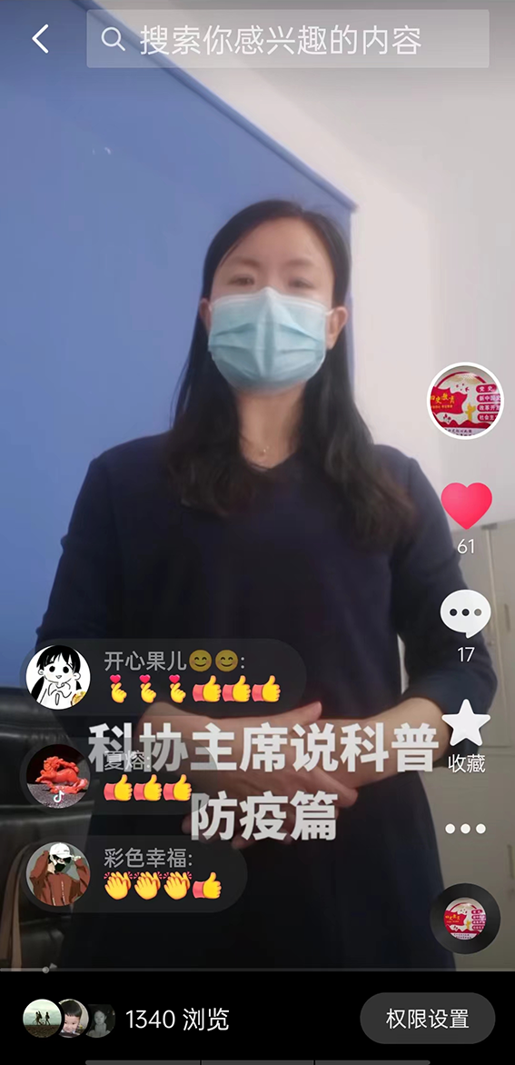 今年以来,驻马店市科协利用抖音等短视频账号推送疫情防控政策、个人防护知识40余条;在科协网站上开设疫情防控科普专栏,发布疫情防控科普知识60余篇;通过微信公众号积极转发推送权威的疫情防控知识一百余篇。