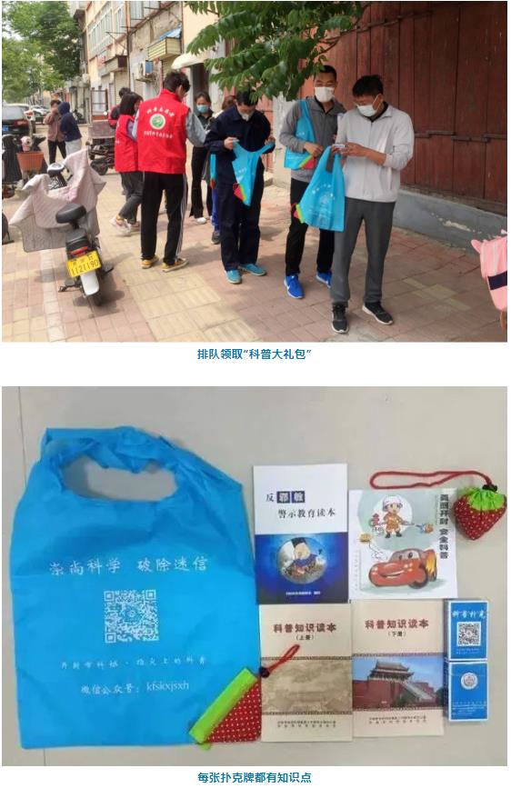 活动现场,开封市科协科普志愿者们帮助社区维持全民核酸检测秩序的同时,向社区居民免费发放疫情防控科普手册、科普扑克、科普手提袋等宣传资料,向社区居民宣传普及如何做好自我防护、如何正确佩戴口罩等疫情防控科普知识。