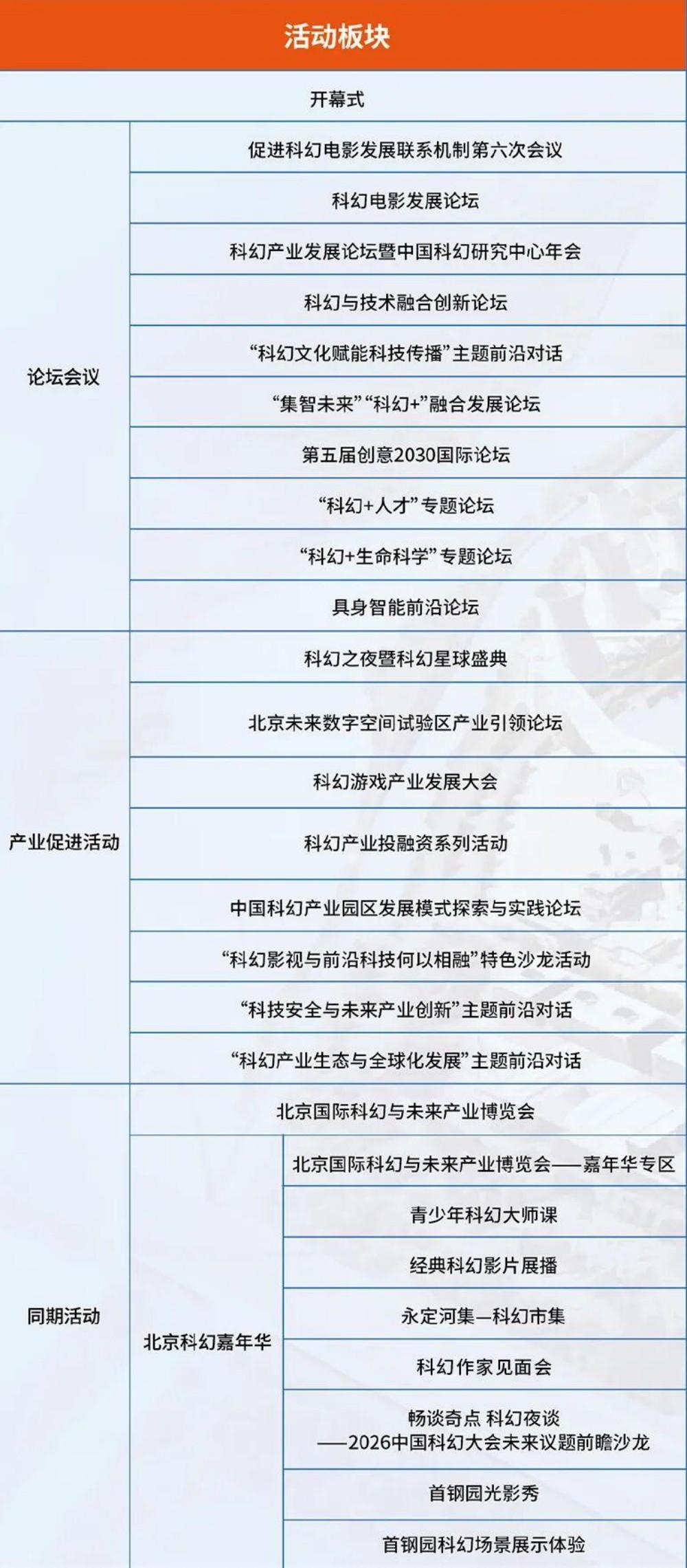 2026中国科幻大会由中国科协、北京市人民政府共同主办,以“荟聚十载 智启新元”为年度主题,设置忆十载、聚共识、兴产业、向未来四大核心板块。