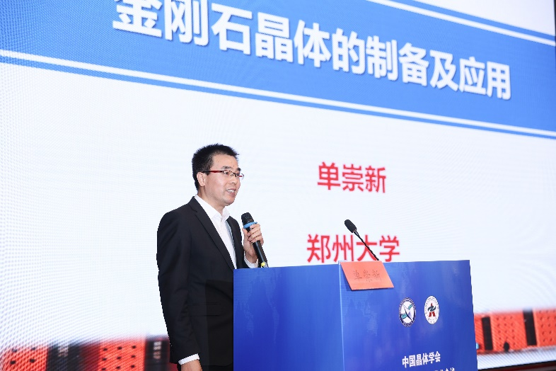 最后,郑州大学副校长单崇新教授做了关于金刚石优异力热光电性能的报告,介绍了团队依托河南产业优势,在深紫外光电探测器、气体传感器及量子传感器等领域的研究进展。
