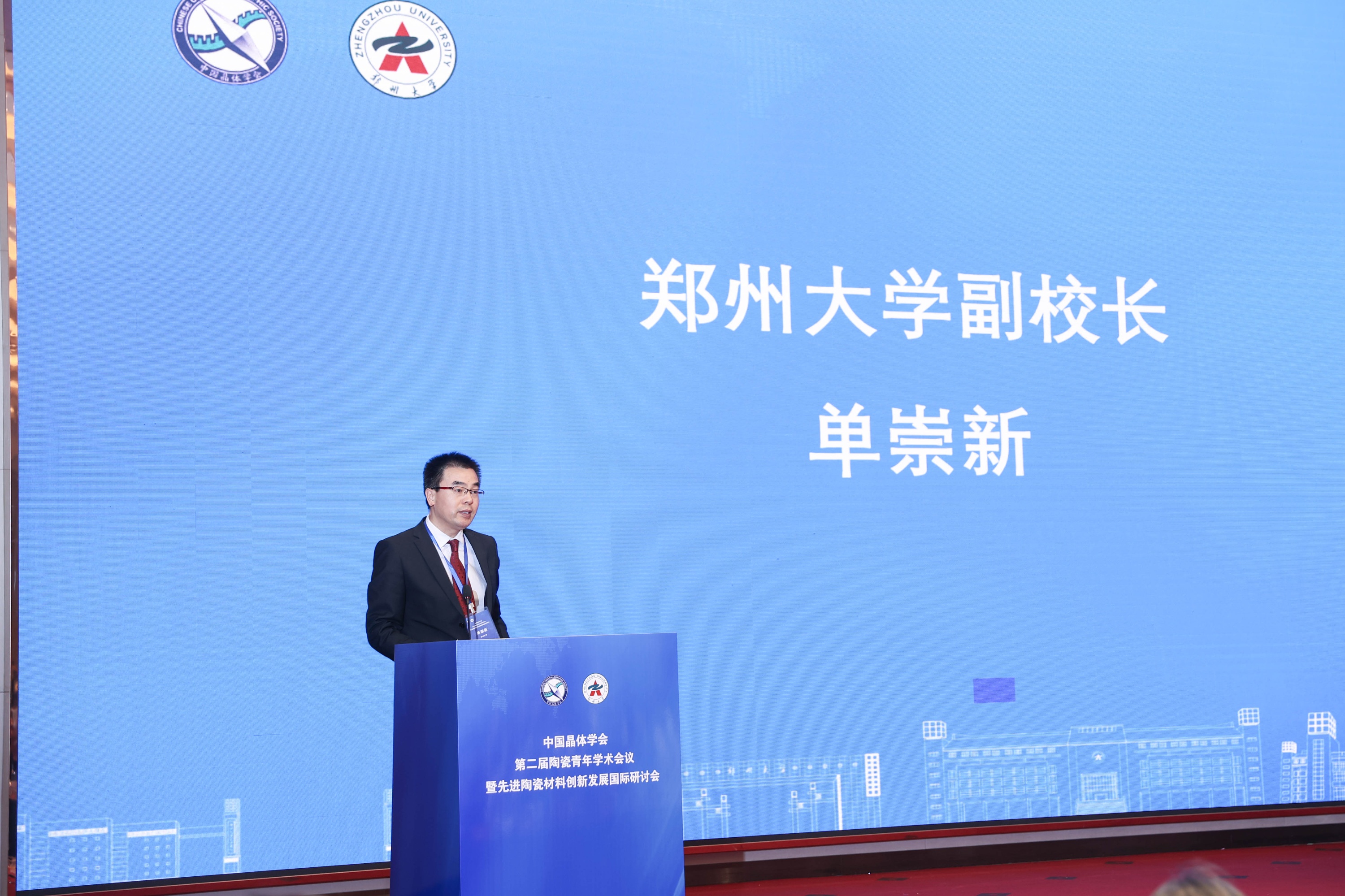 在会议的开幕式上,中国晶体学会陶瓷专业委员会主任黄富强教授、郑州大学副校长单崇新教授、中国晶体学会副理事长孙俊良教授分别致辞。黄富强教授代表大会主办方,热烈欢迎与会嘉宾,并感谢了为会议筹备付出努力的工作人员。他指出,郑州具有悠久的制陶历史,尽管中国陶瓷产业在市场规模和国产化率方面取得了显著进步,但在高端环节仍依赖进口。黄教授还列举了中国科研团队在学术领域所取得的突出成绩,并强调了青年才俊在推动陶瓷行业创新和变革中的关键作用。他鼓励大家在“硬科技”、“跨学科”和“全球化”方面不断努力,共同推动中国陶瓷行业的未来发展。