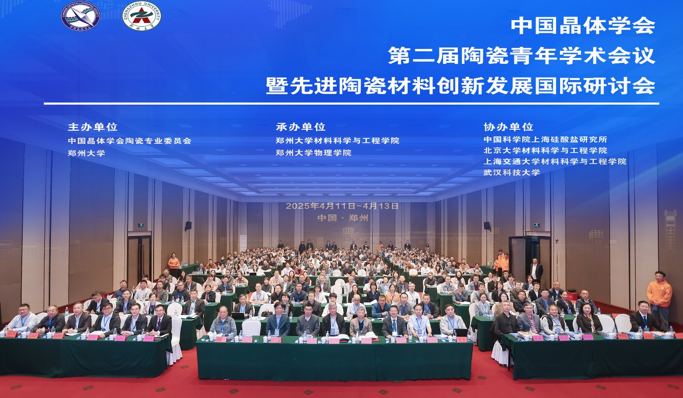 2025年4月11日至13日,中国晶体学会第二届陶瓷青年学术会议暨先进陶瓷材料创新发展国际研讨会在河南郑州成功举办。会议邀请了包括100余位院士、杰出青年等国家级人才在内的1000多位陶瓷领域专家、学者以及美国、新加坡等国际知名陶瓷专家参会并出席开幕式。本次会议围绕先进陶瓷材料的前沿研究和产业应用展开了深入的交流与探讨,为推动该领域的创新发展与合作共赢提供了重要学术平台。会议由中国晶体学会陶瓷专业委员会和郑州大学主办,由郑州大学材料科学与工程学院和郑州大学物理学院承办,并由中国科学院上海硅酸盐研究所、北京大学材料科学与工程学院、上海交通大学材料科学与工程学院及武汉科技大学协办。